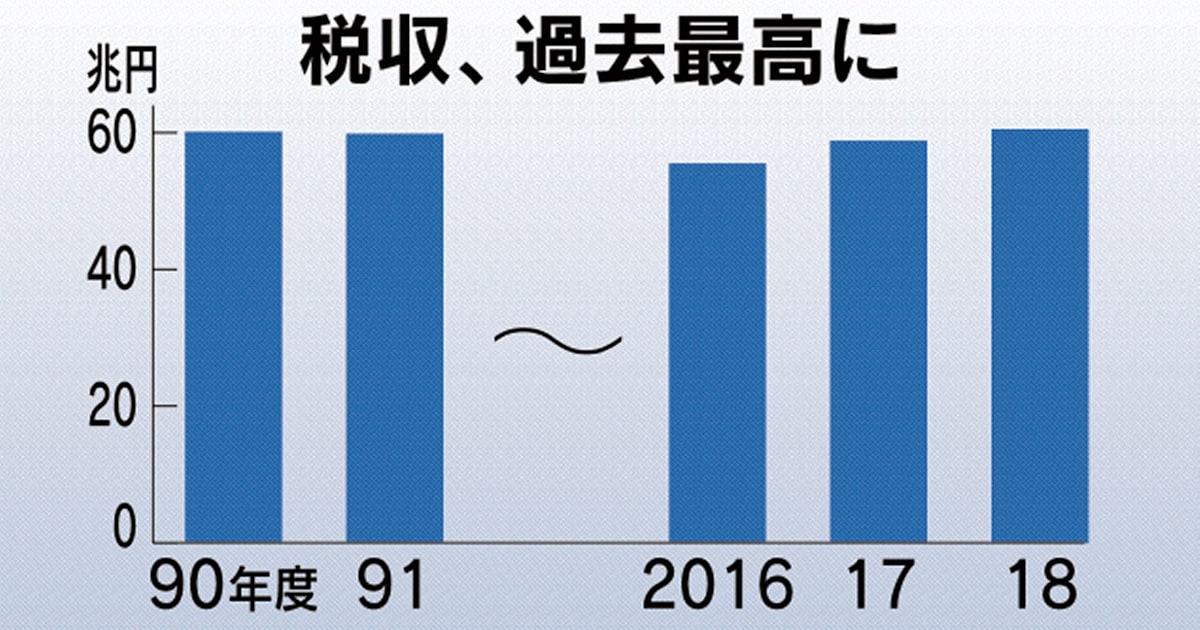 2019年6月26日に報じられた日本の数字で見てみると、2018年の国の一般会計税収が60兆円超を越えます。